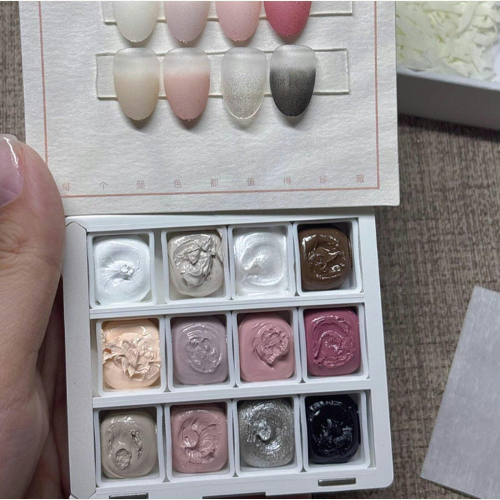 另附 12 个方形打板色卡,可贴于盘内整齐分类